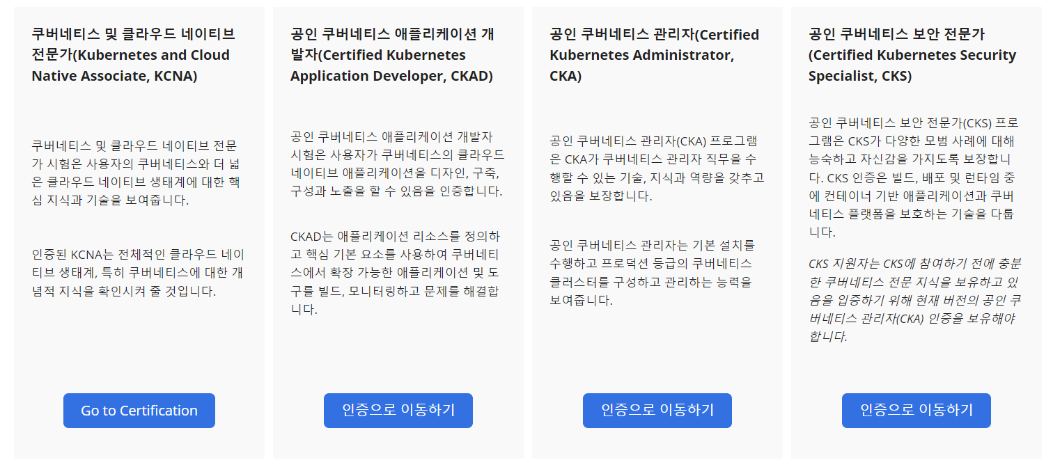 쿠버네티스 자격증에는 4가지 종류가 있다.