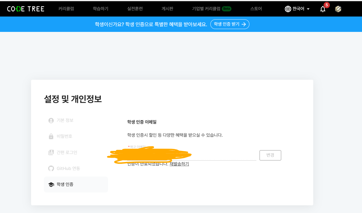 1. 코드트리 -학생계정 인증