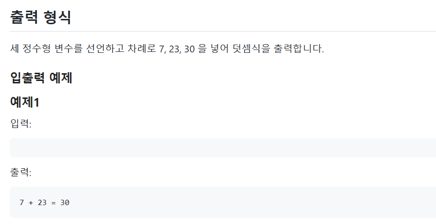 print("{0} + {1} = {2}".format(a,b,a+b))