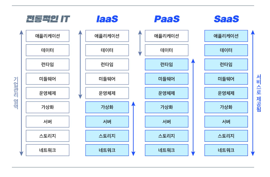 - Infrastructure as a Service(IaaS, 아이아스)개발사에 제공되는 물리적 자원을 가상화