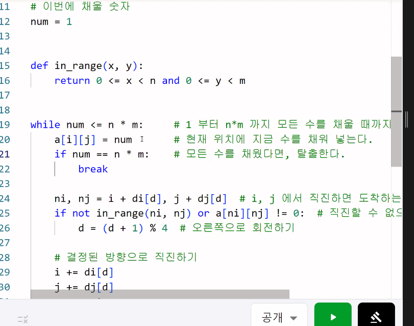 in_range 체크할때 i 는 n 까지, j 는 m 까지임