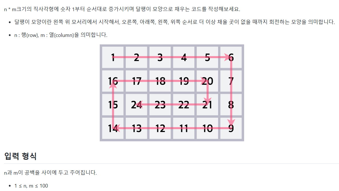 - 문제 4 : 빙빙돌며 사각형 채우기 ** 삼성 자주나옴