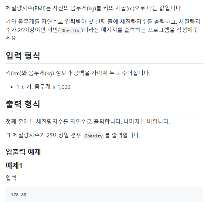 - 문제 : if 조건문/ 체질량 지수
