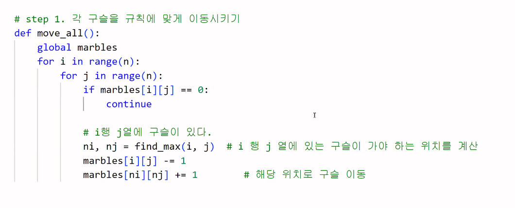 #step 1. 각 구슬을 규칙에 맞게 이동시키기