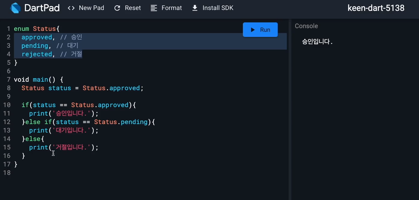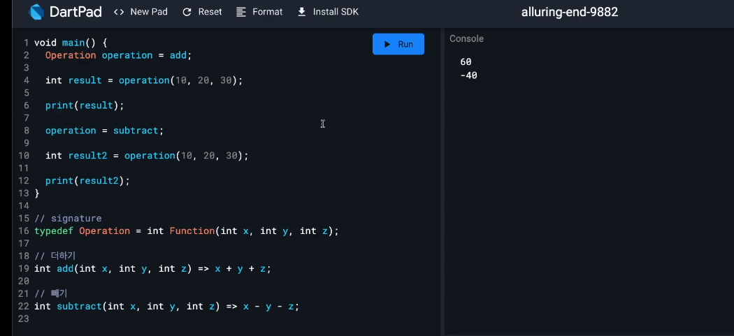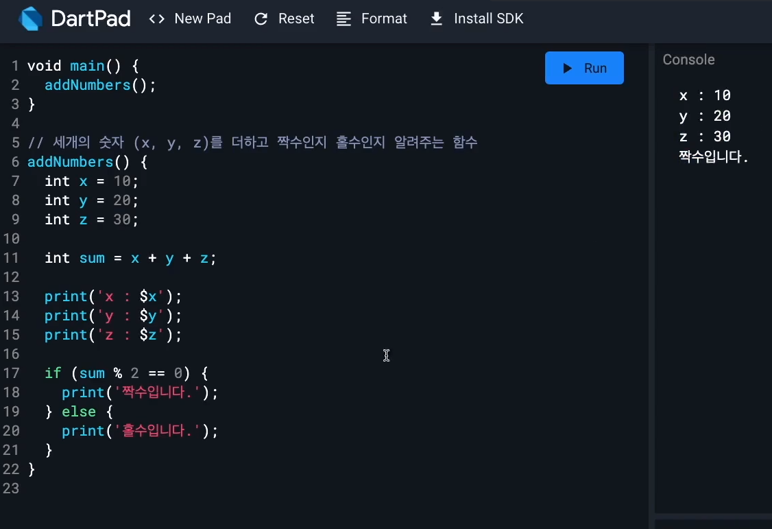 1. 다트 언어 기본 1:02 ~ 1:33 : [코드팩토리] [입문] Dart 언어 4시간만에 완전정복 | 학습 페이지 (inflearn.com)