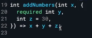 네임드 파라미터는 디폴트가 옵셔널임 , 안넣어도 되는거 / (cf. positional 에서는 디폴트가 필수 파라미터임 꼭넣어야하는거)