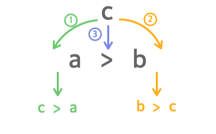 a,b 의 대소비교를 기준으로 하여 c를 그사이에 끼워넣는방식으로 케이스분류를 할수있다.