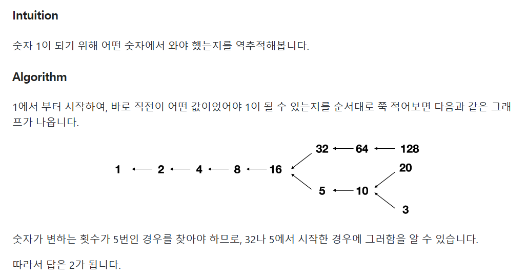 2로 5번 나누어 떨어지는 수를 찾는 문제이다...