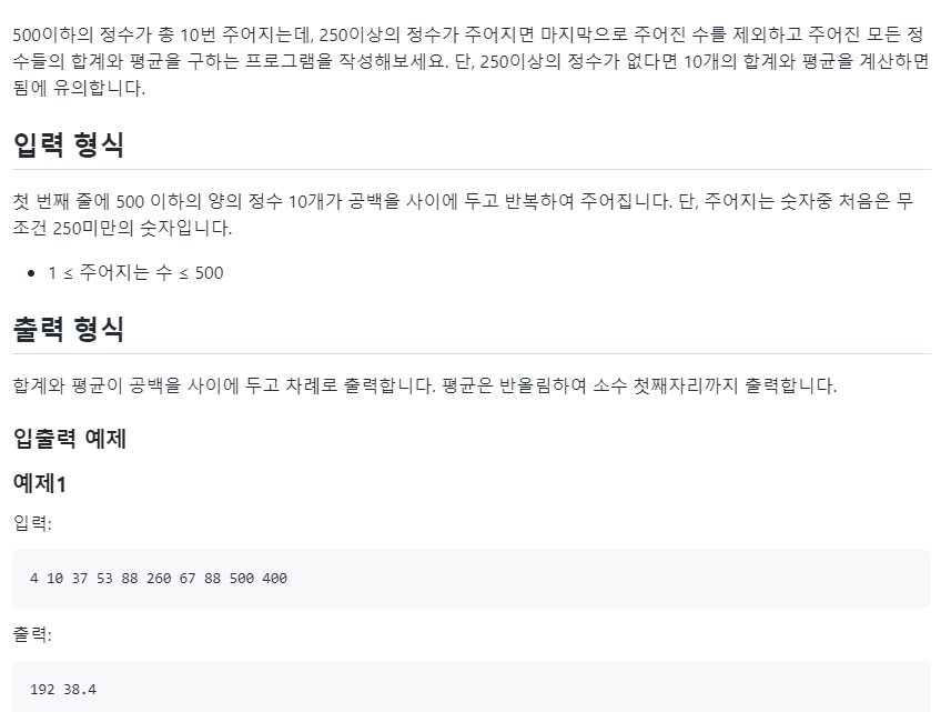 print(f'{sum_list} {sum_list/len(under_250):.1f}')