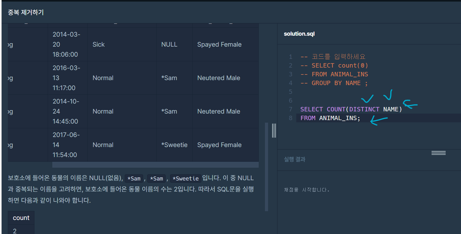 [SQL] DISTINCT 를 활용하여 중복없이 개수세기 본문